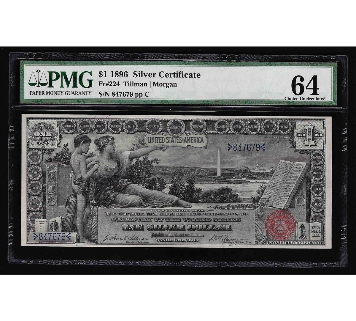 One 1896 $1 Silver Certificate Educational Note PMG Graded CU64. PMG Certified.