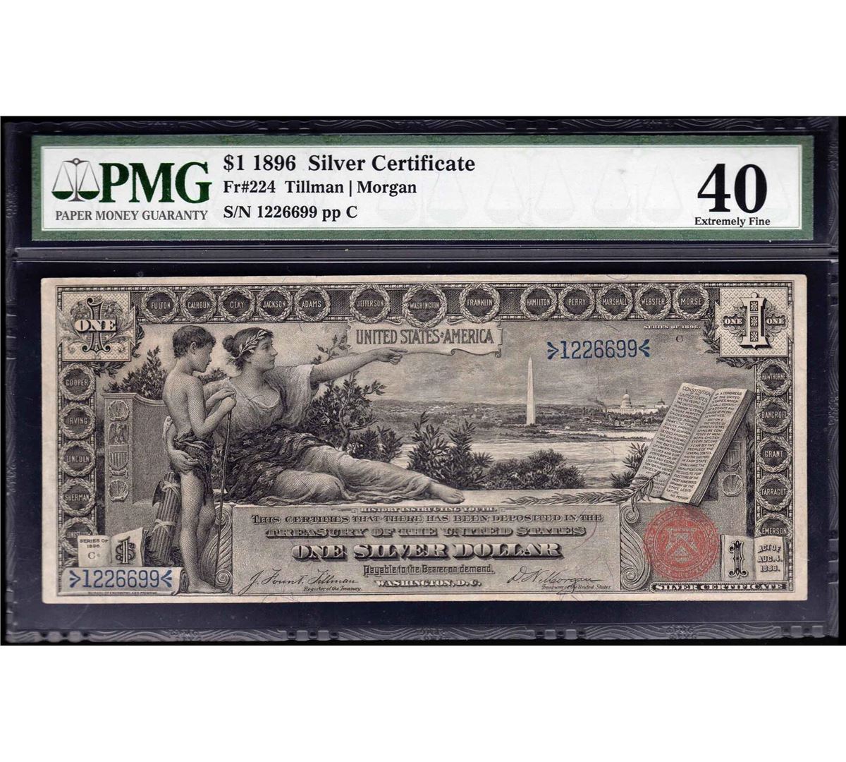 One 1896 $1 Silver Certificate Educational Note PMG XF40. PMG Certified.