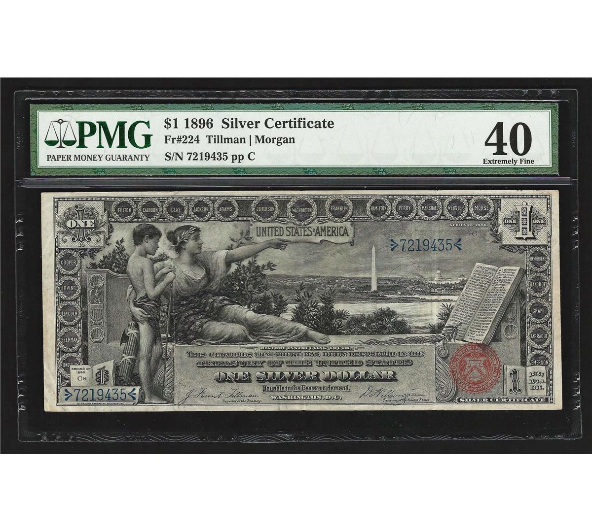 One 1896 $1 Silver Certificate Educational Note PMG XF40. PMG Certified.