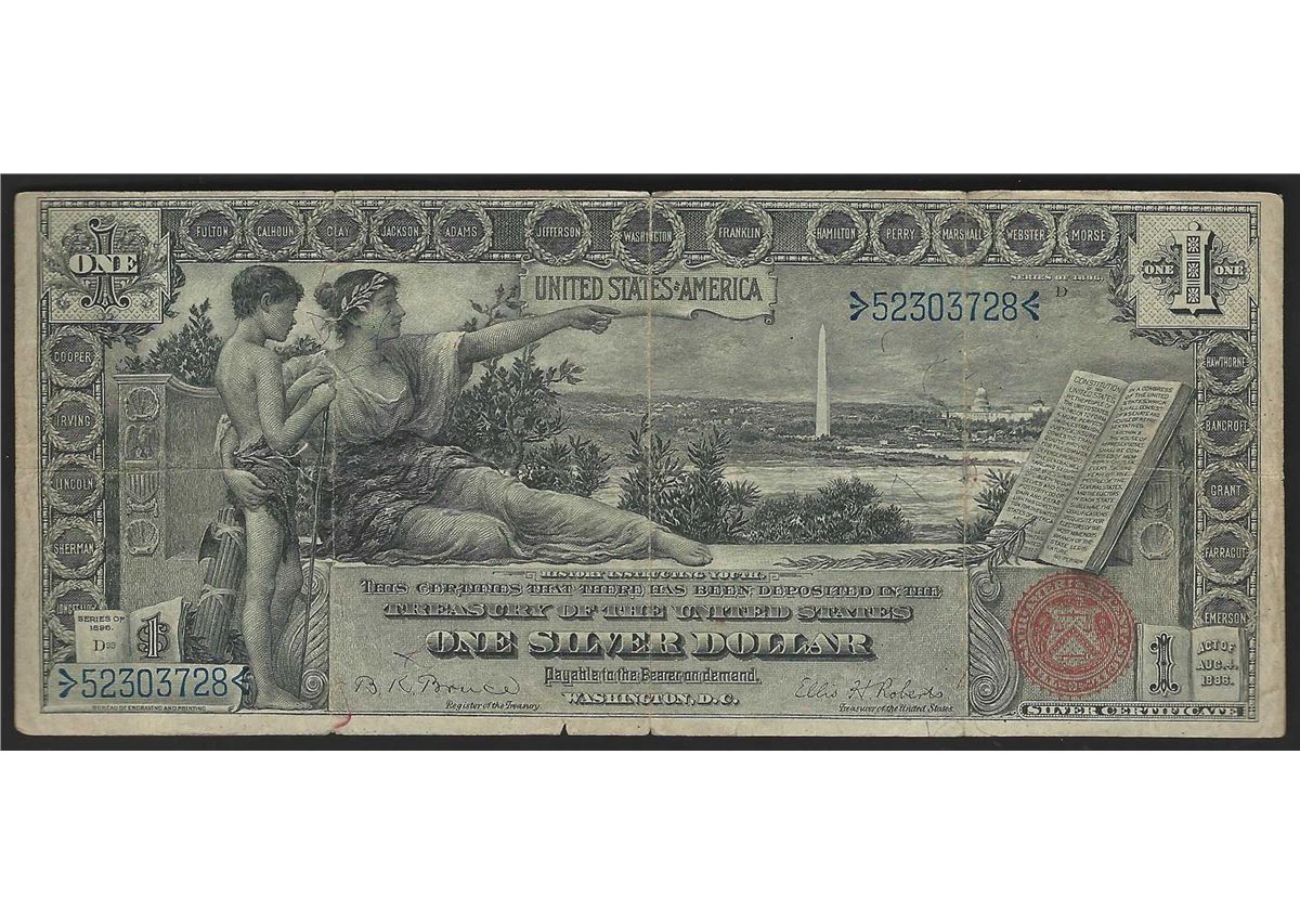 One 1896 $1 Silver Certificate Educational Note Pinholes & Splits.