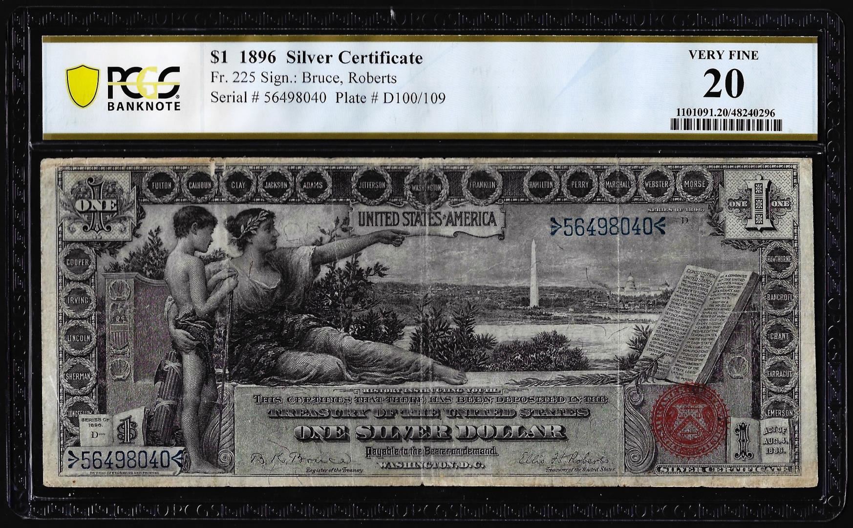 One 1896 $1 Silver Certificate Note Fr.225 PCGS Very Fine 20. PCGS Graded.