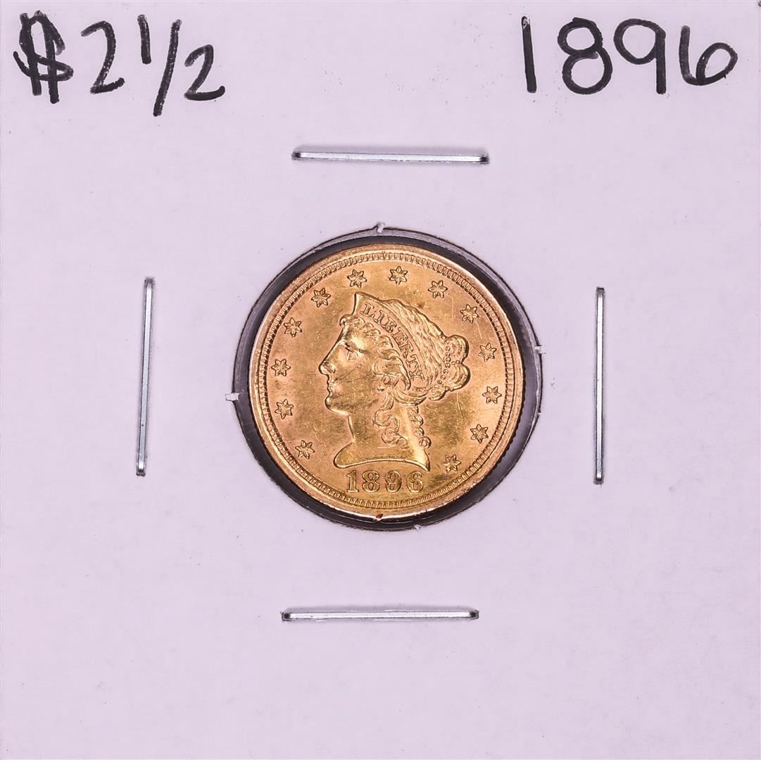 One 1896 $2 1/2 Liberty Head Quarter Eagle Gold Coin.