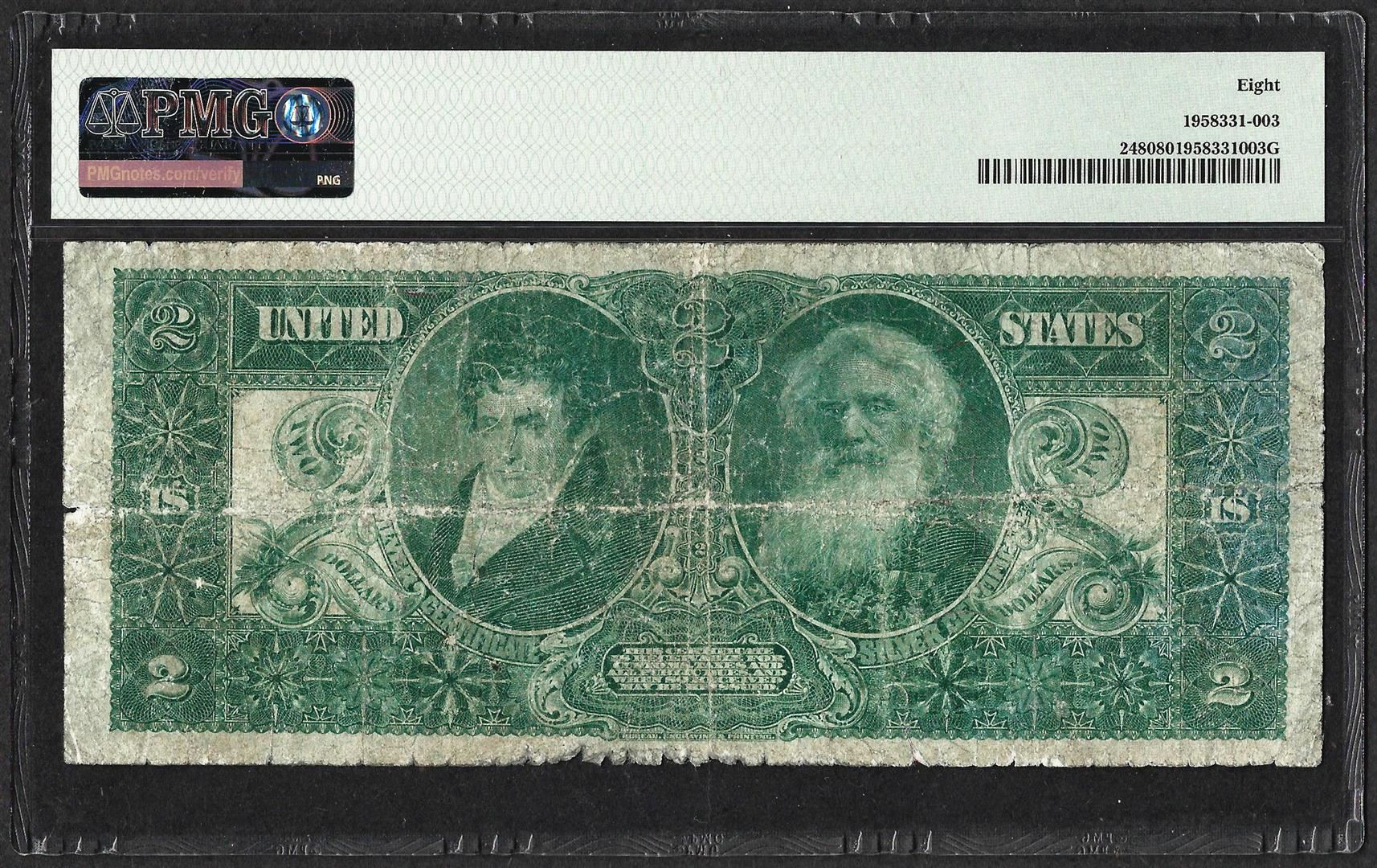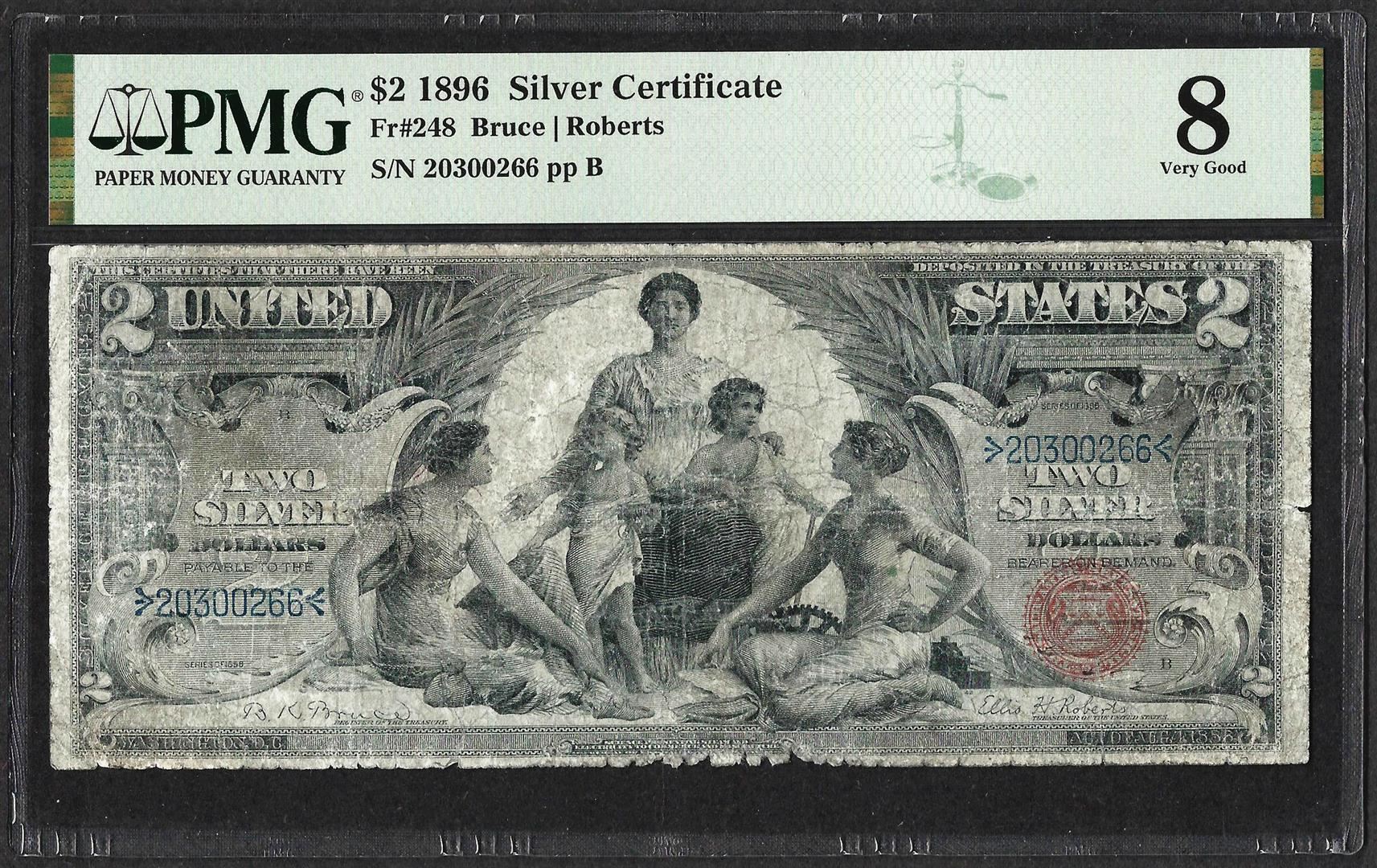 One 1896 $2 Educational Silver Certificate Note Fr.248 PMG Very Good 8. PMG Certified.