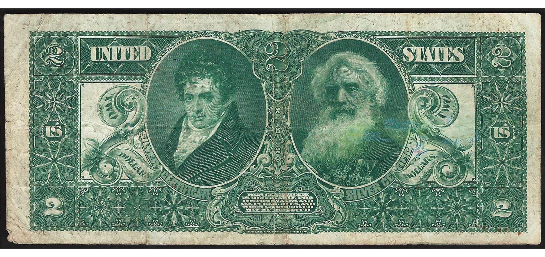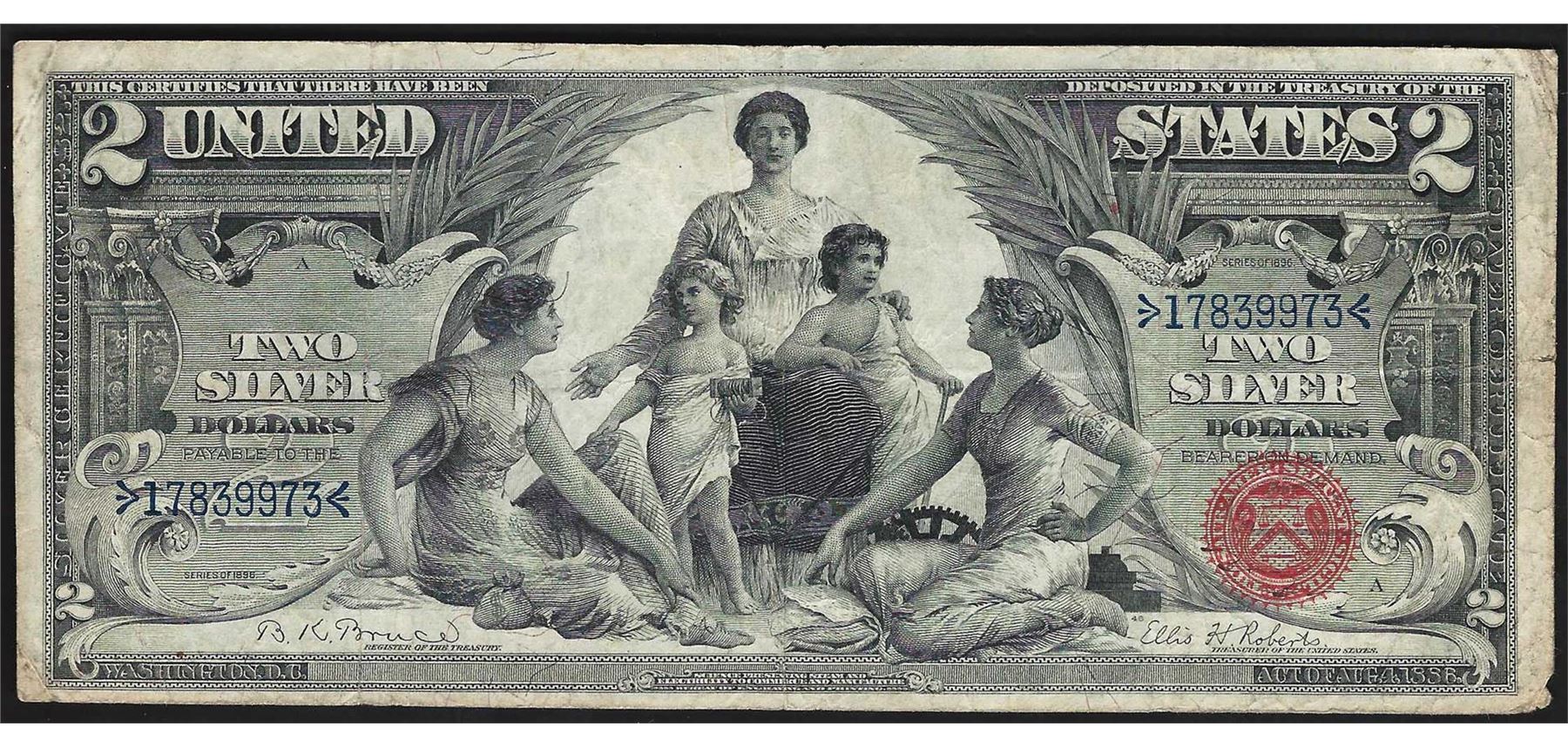 One 1896 $2 Educational Silver Certificate Note.