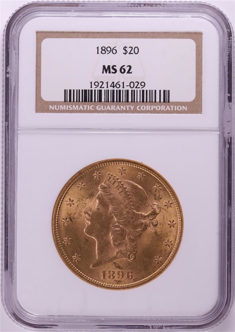 One 1896 $20 Liberty Head Double Eagle Gold Coin NGC MS62. NGC Certified.