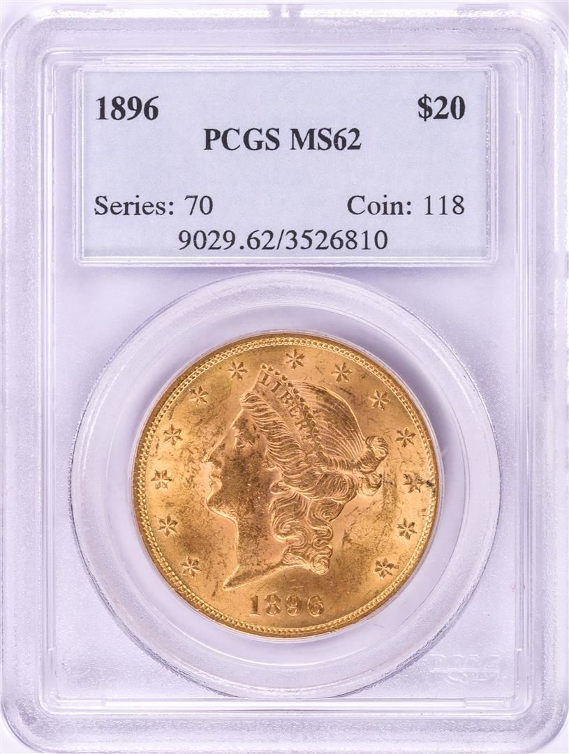 One 1896 $20 Liberty Head Double Eagle Gold Coin PCGS MS62. PCGS Graded.