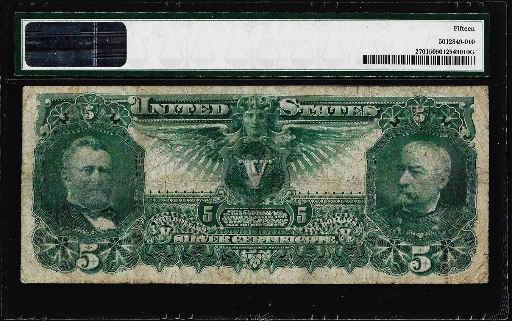 One 1896 $5 Educational Silver Certificate Note Fr.270 PMG Choice Fine 15. PMG Certified.