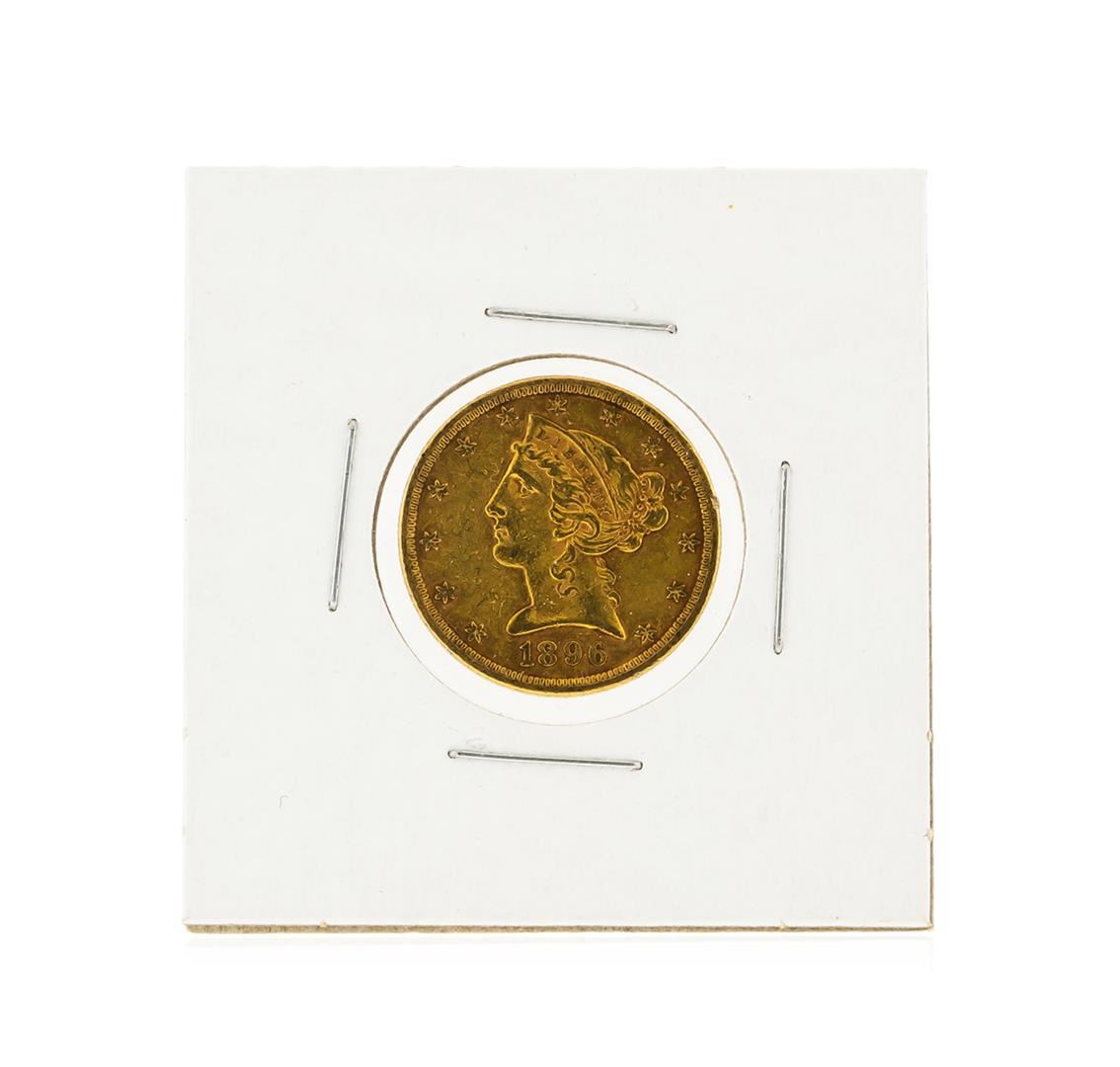 One 1896 $5 Liberty Head Half Eagle Gold Coin.