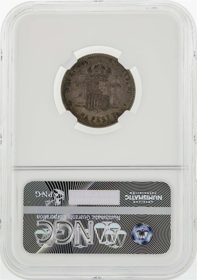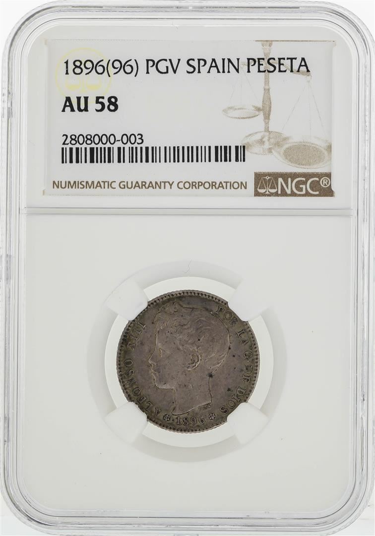 One 1896(96) PGV Spain Pesta Coin NGC AU58. NGC Certified.