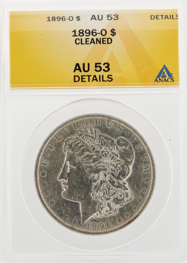 One 1896-O $1 Morgan Silver Dollar Coin Cleaned ANACS AU53 Details. ANACS Certified.