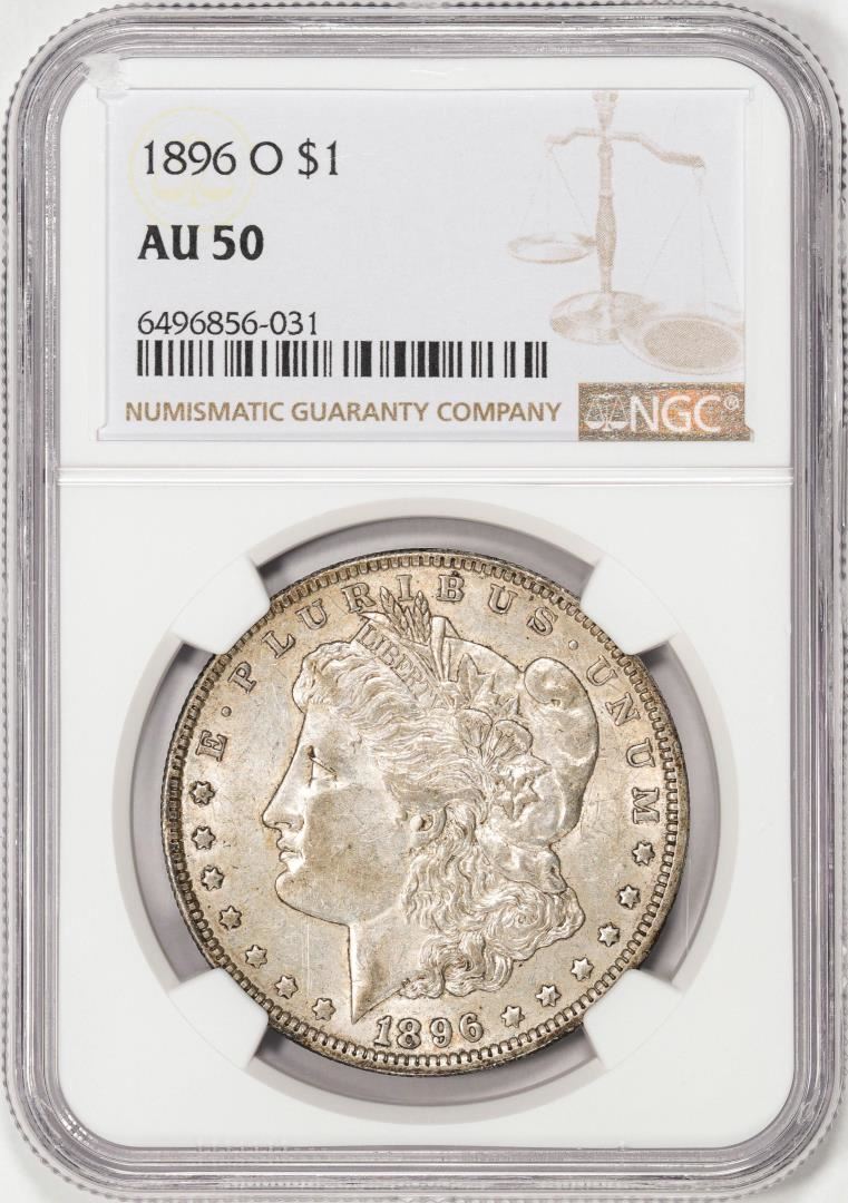 One 1896-O $1 Morgan Silver Dollar Coin NGC AU50. NGC Certified.