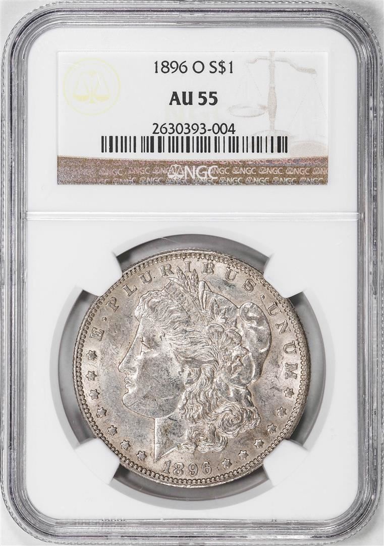One 1896-O $1 Morgan Silver Dollar Coin NGC AU55. NGC Certified.