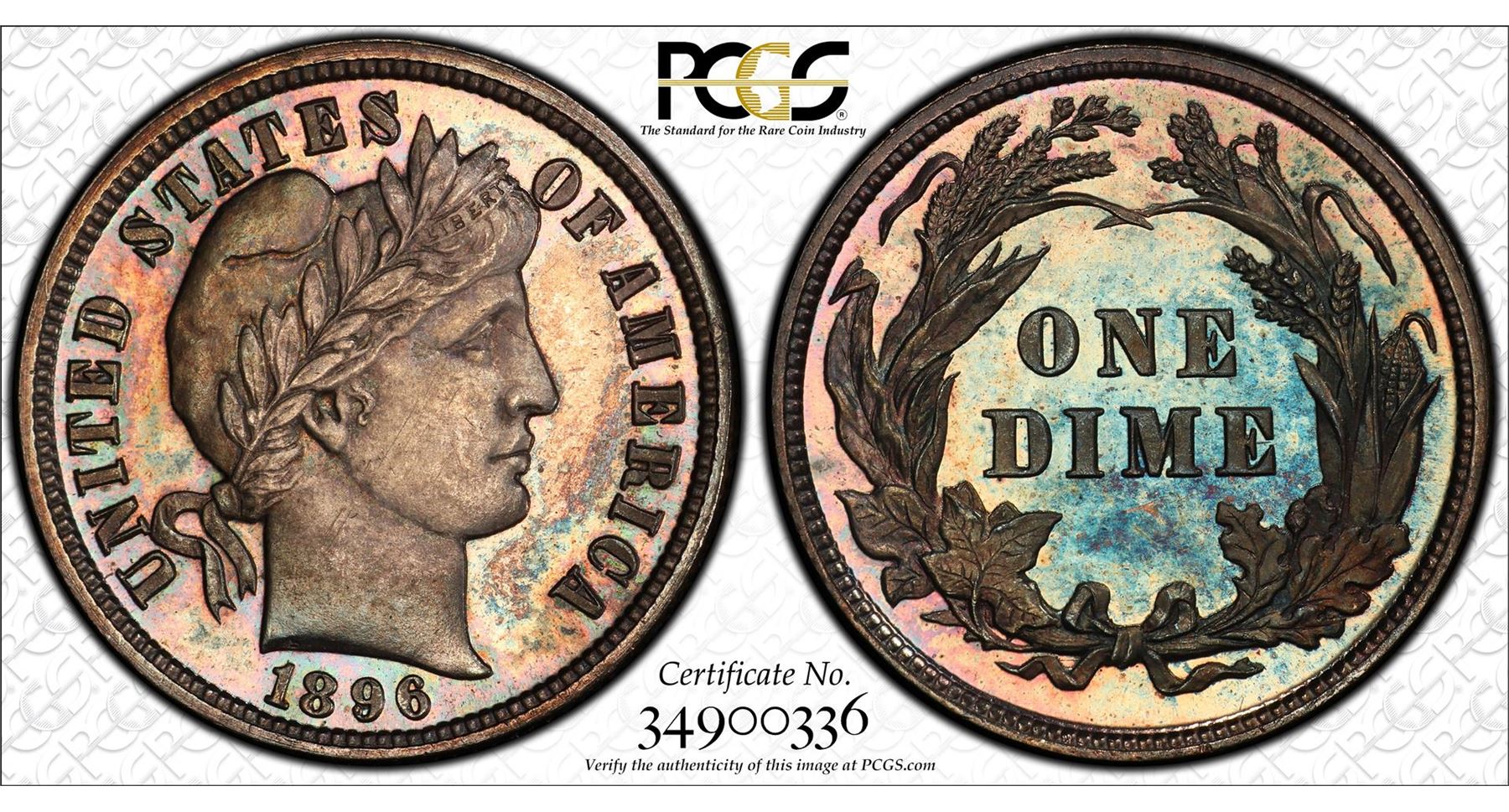 One 1896 Proof Barber Dime Coin PCGS PR64 Amazing Toning. PCGS Graded.