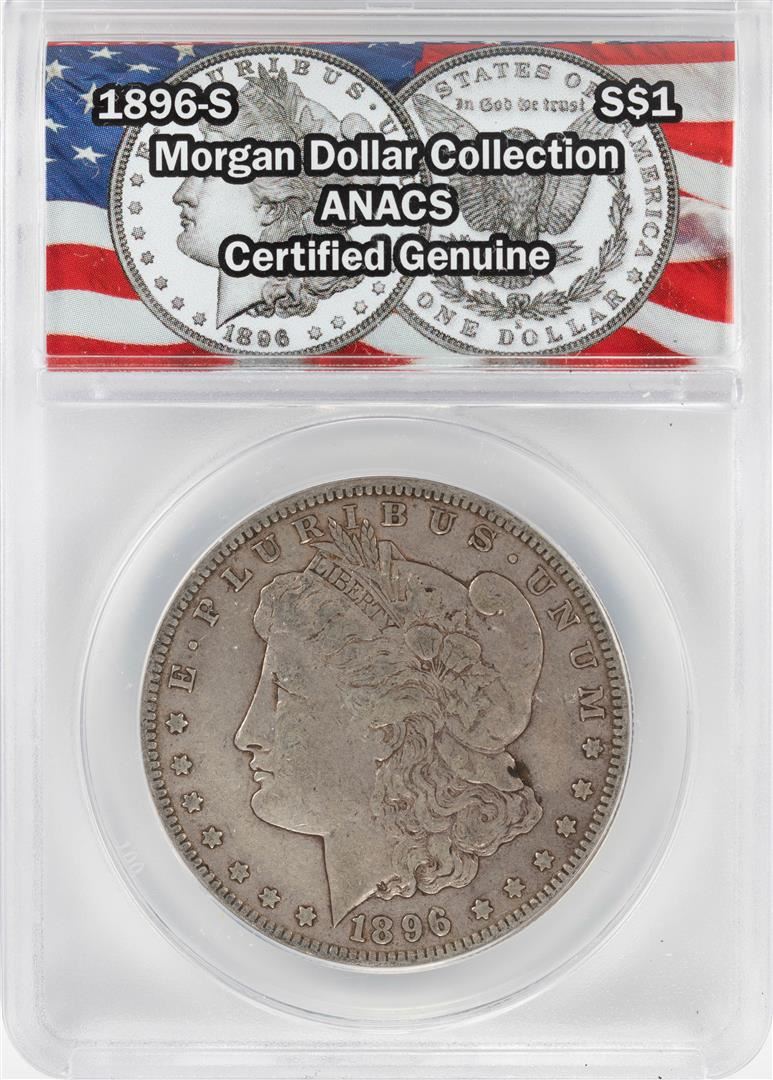One 1896-S $1 Morgan Silver Dollar Coin ANACS Certified Genuine. ANACS Certified.