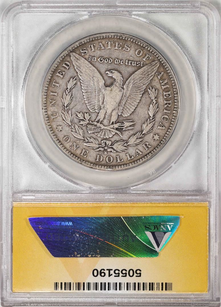 One 1896-S $1 Morgan Silver Dollar Coin ANACS F12. ANACS Certified.