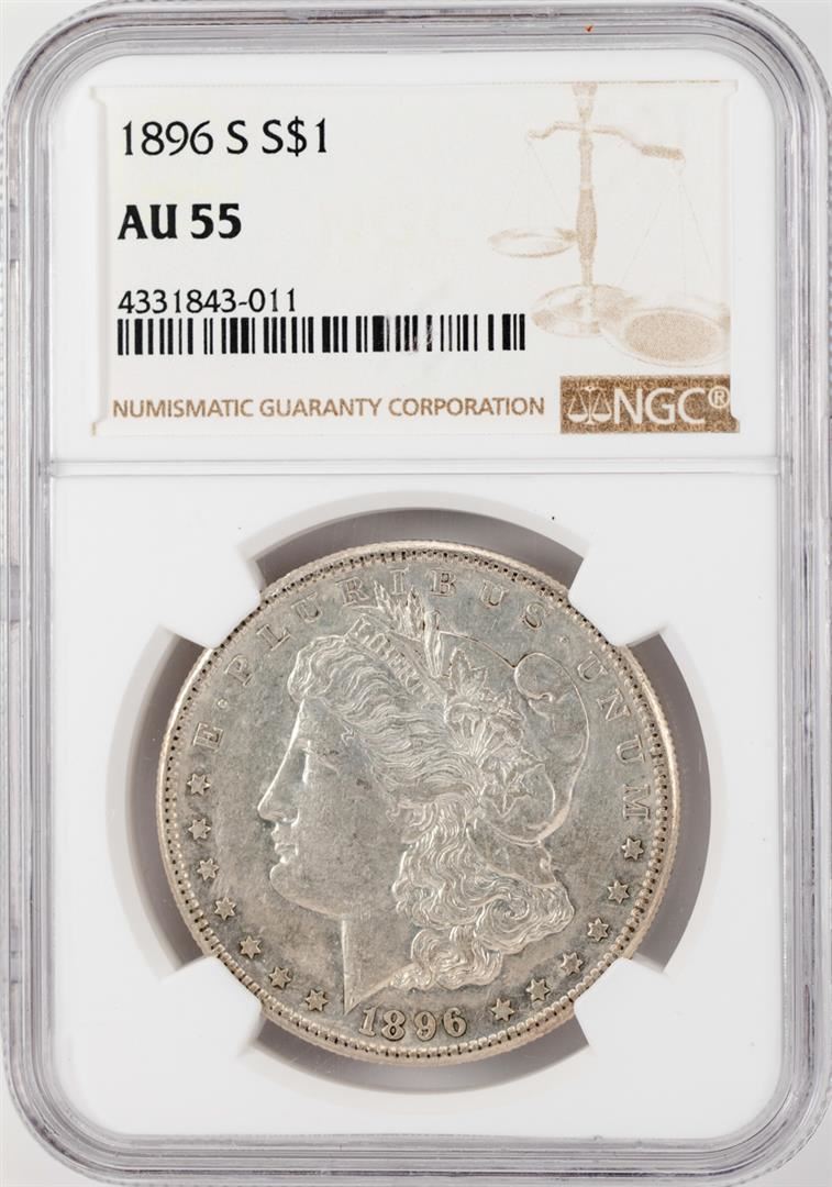 One 1896-S $1 Morgan Silver Dollar Coin NGC AU55. NGC Certified.