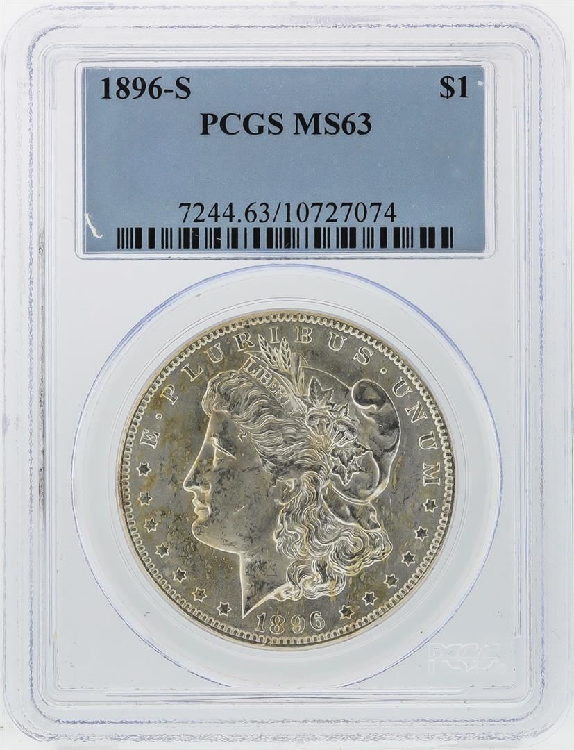 One 1896-S $1 Morgan Silver Dollar Coin PCGS Graded MS63. PCGS Graded.