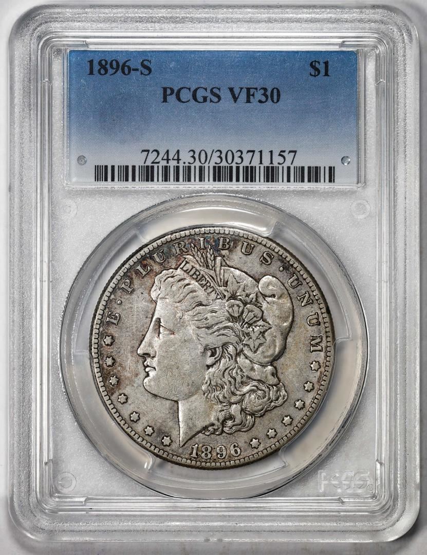 1896-S $1 Morgan Silver Dollar Coin PCGS VF30 Nic Toning