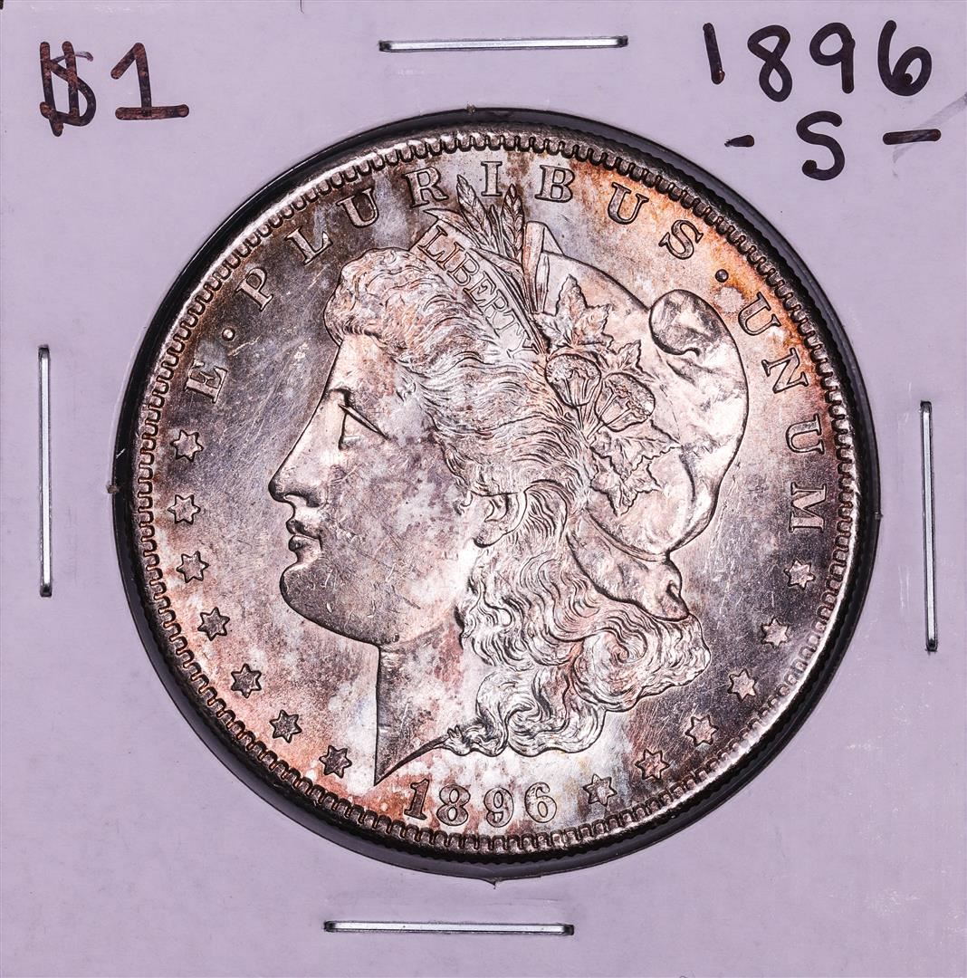One 1896-S $1 Morgan Silver Dollar Coin.