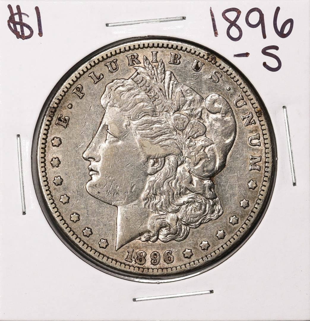 One 1896-S $1 Morgan Silver Dollar Coin.