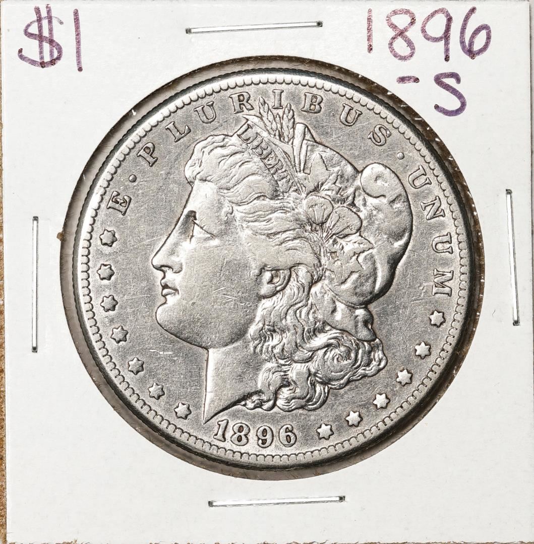 One 1896-S $1 Morgan Silver Dollar Coin.