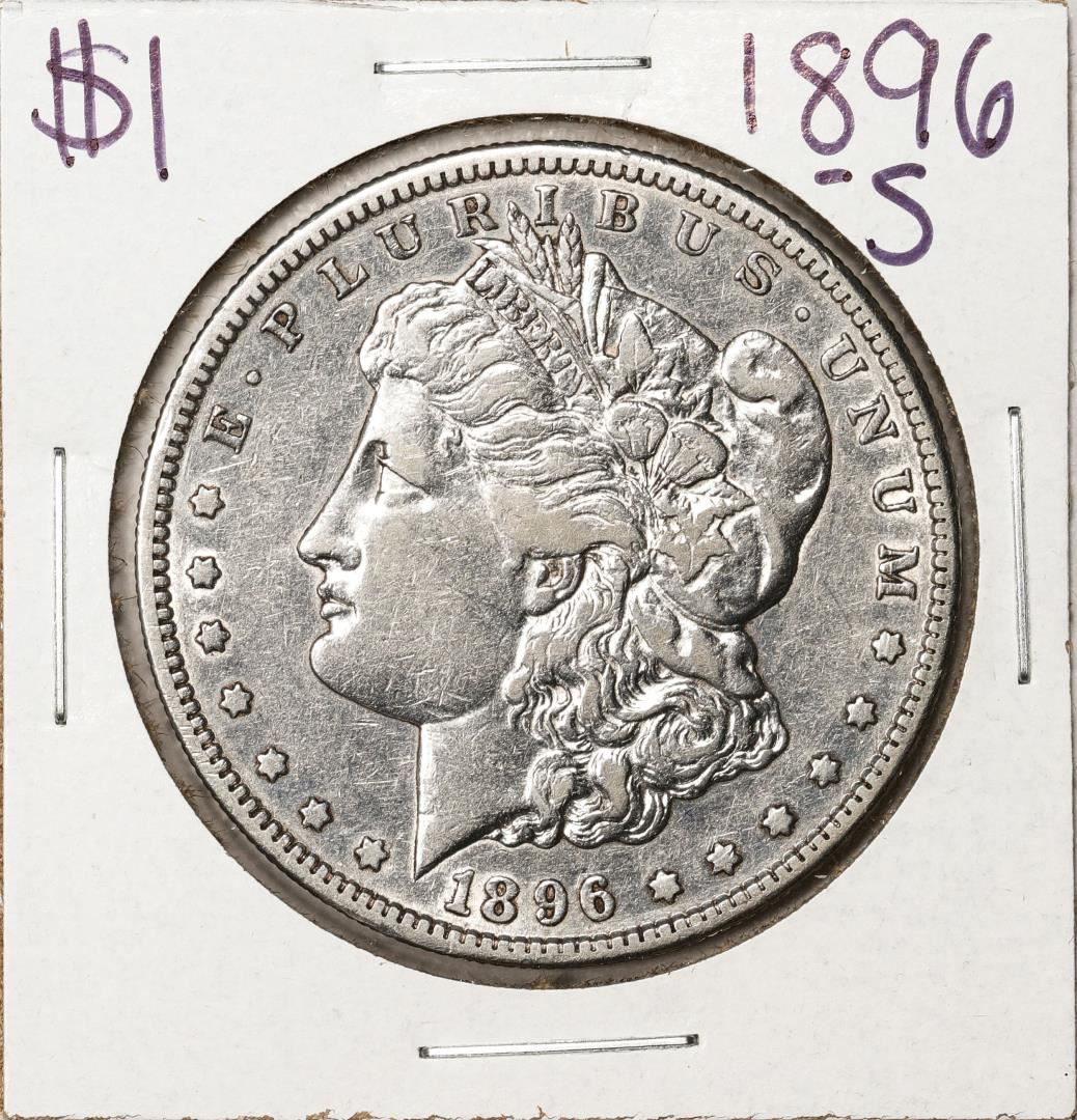 One 1896-S $1 Morgan Silver Dollar Coin.