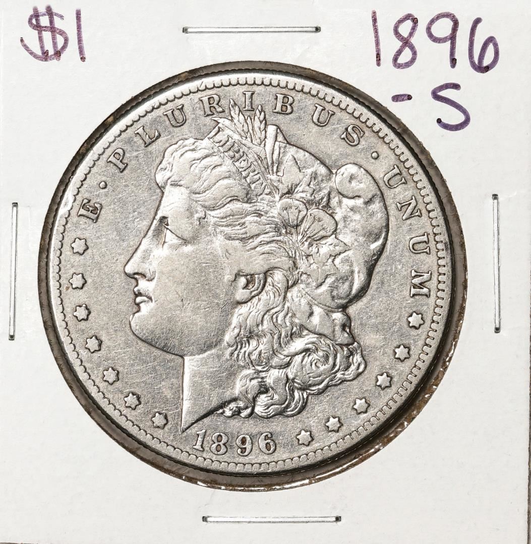 One 1896-S $1 Morgan Silver Dollar Coin.