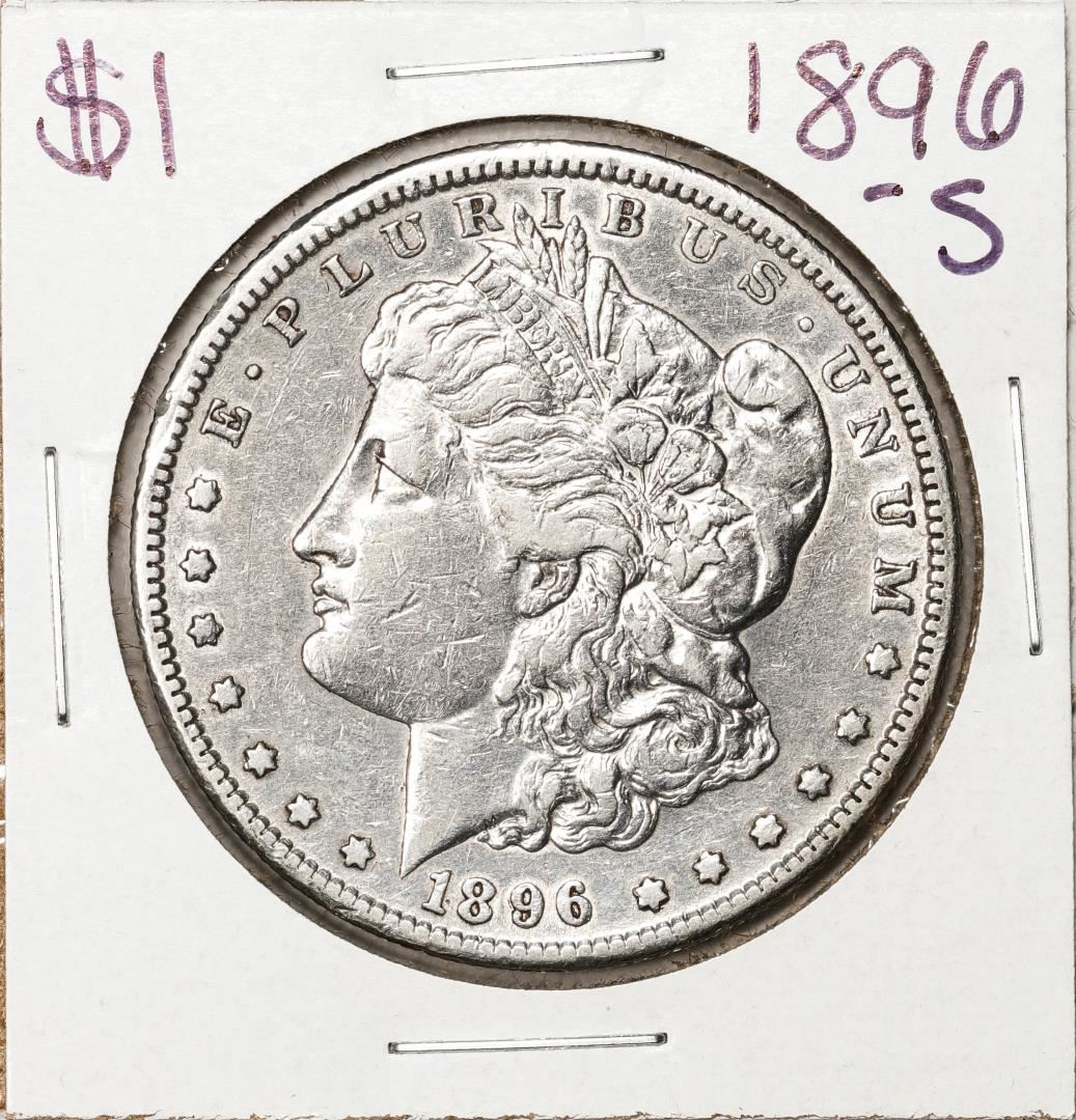 One 1896-S $1 Morgan Silver Dollar Coin.