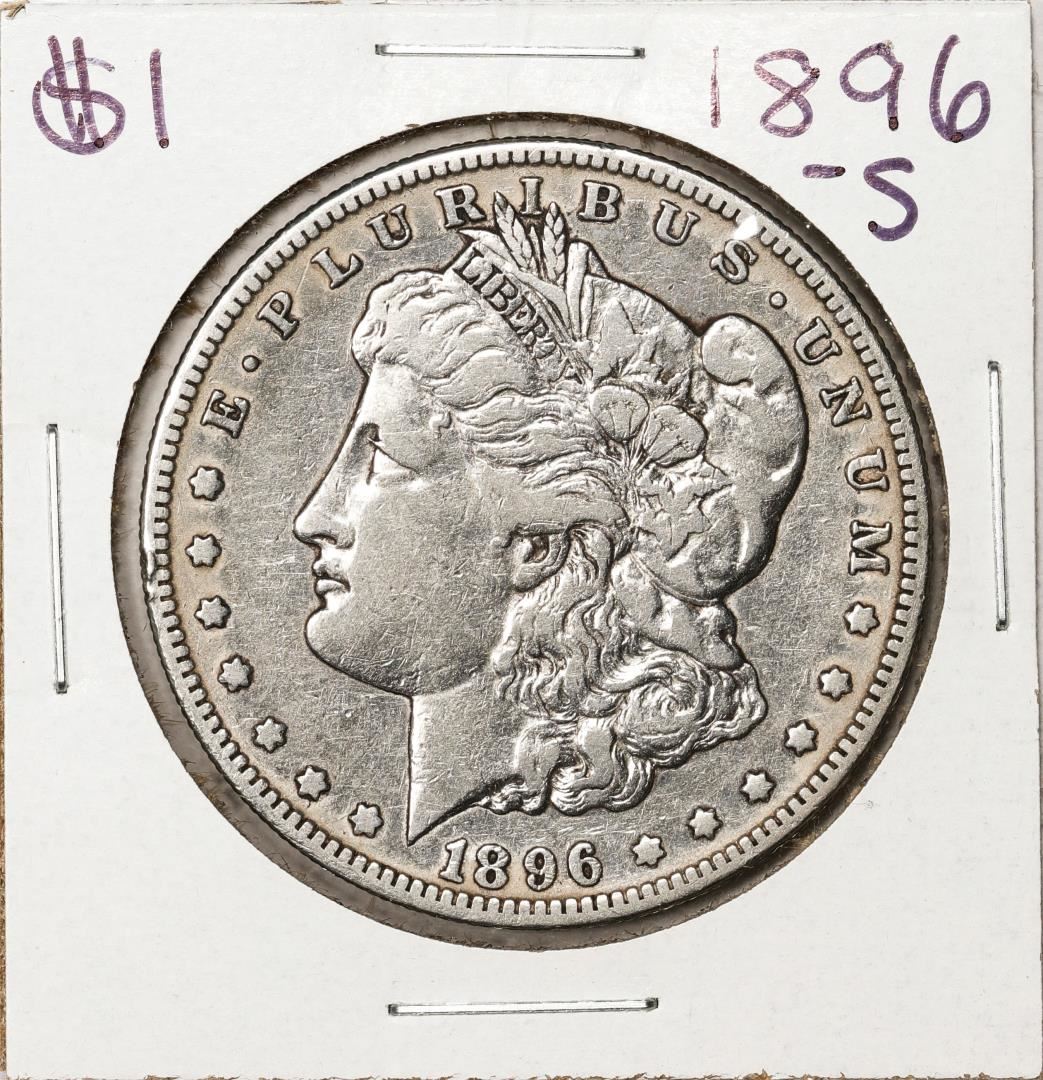 One 1896-S $1 Morgan Silver Dollar Coin.