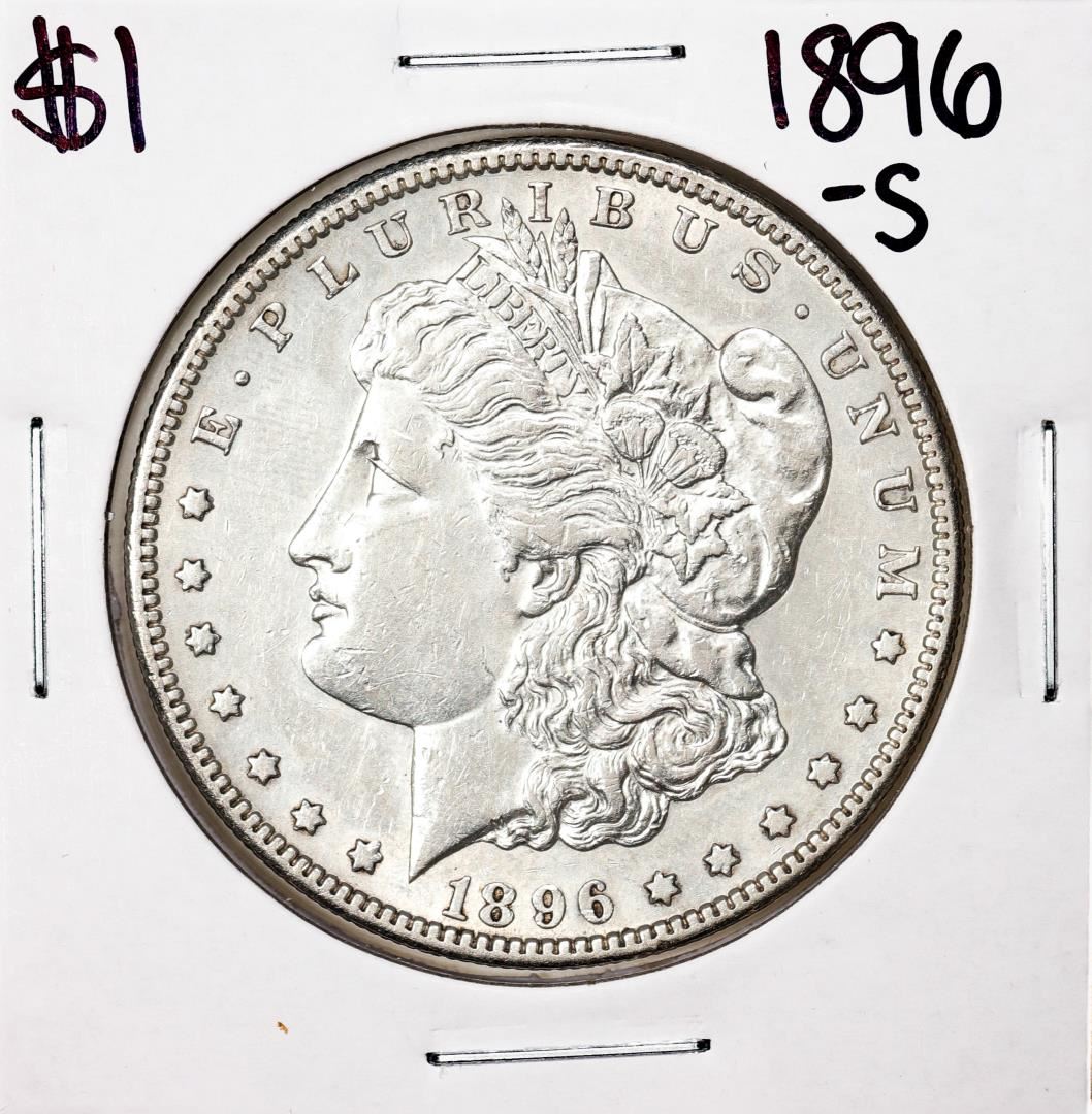 One 1896-S $1 Morgan Silver Dollar Coin.