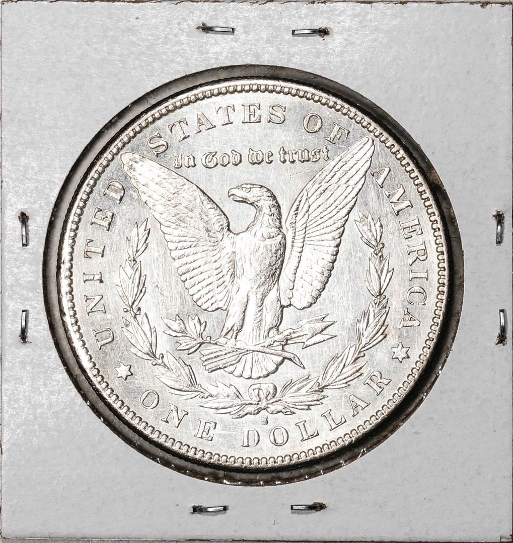 One 1896-S $1 Morgan Silver Dollar Coin.