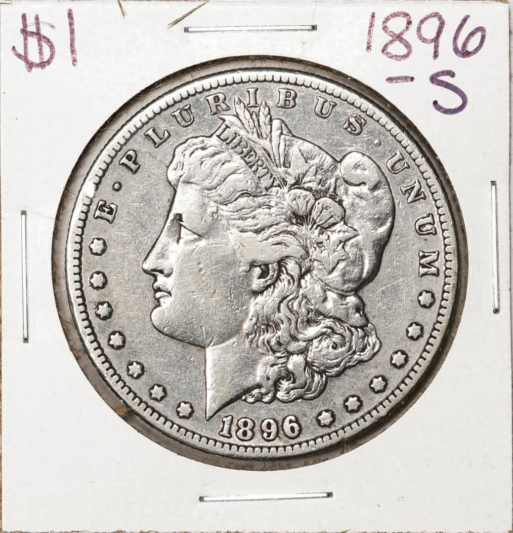 One 1896-S $1 Morgan Silver Dollar Coin.