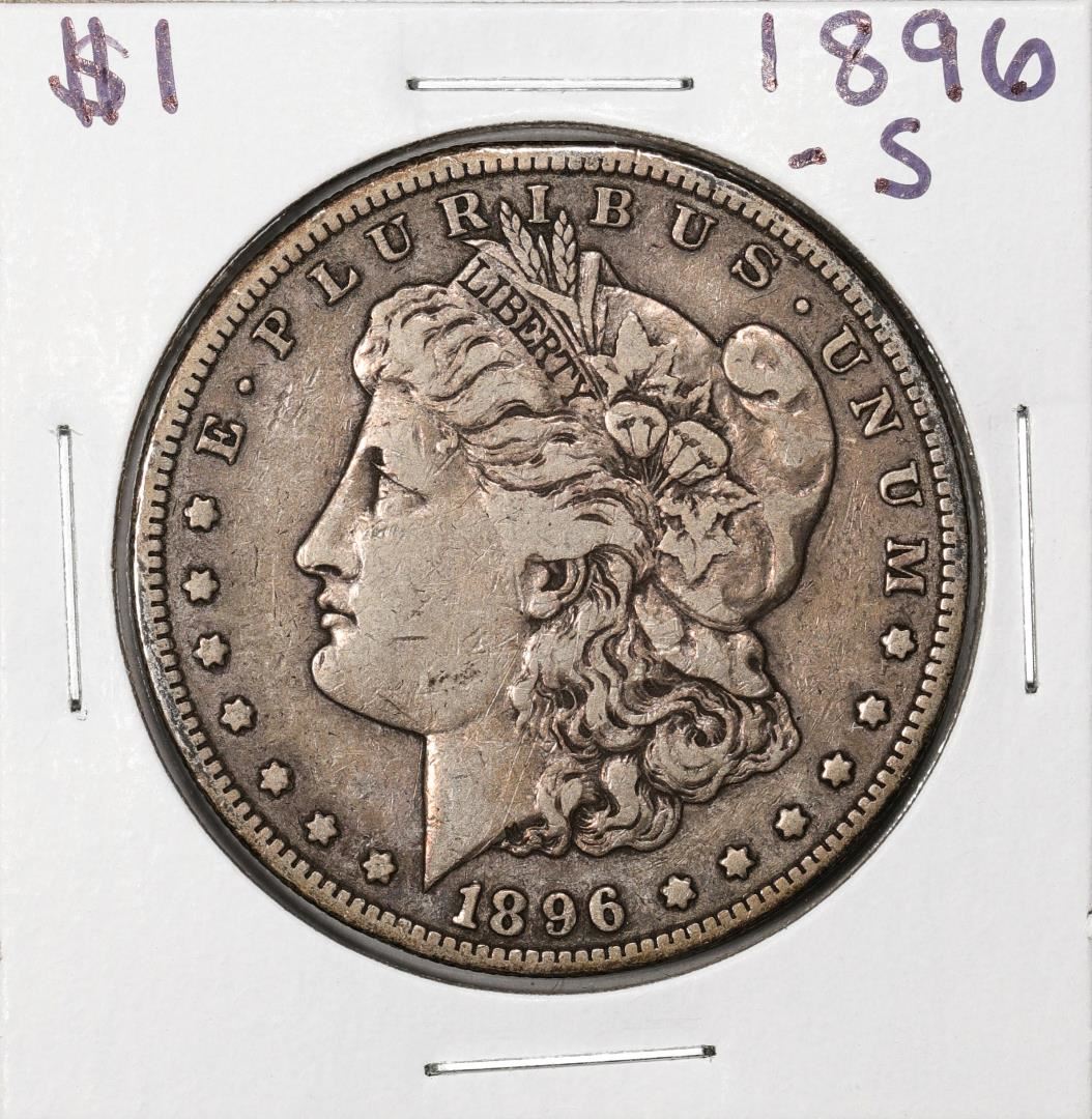 One 1896-S $1 Morgan Silver Dollar Coin.