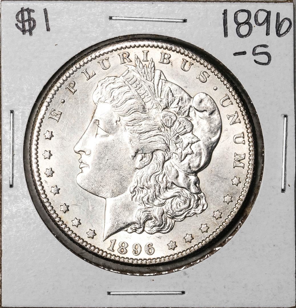 One 1896-S $1 Morgan Silver Dollar Coin.