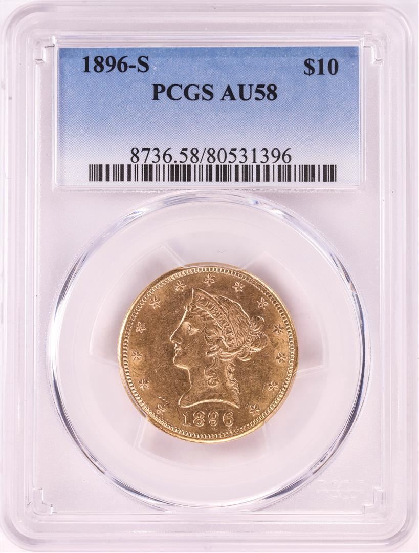 One 1896-S $10 Liberty Head Eagle Gold Coin PCGS AU58. PCGS Graded.