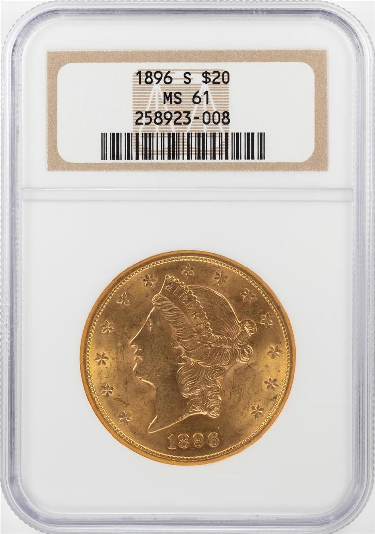 One 1896-S $20 Liberty Head Double Eagle Gold Coin NGC MS61. NGC Certified.