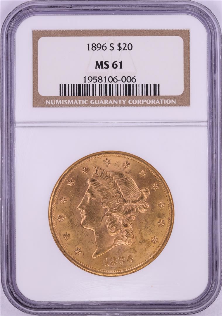 One 1896-S $20 Liberty Head Double Eagle Gold Coin NGC MS61. NGC Certified.