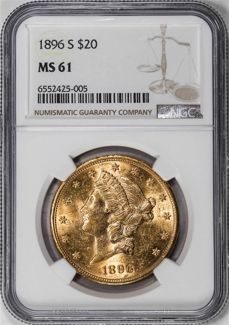 One 1896-S $20 Liberty Head Double Eagle Gold Coin NGC MS61. NGC Certified.