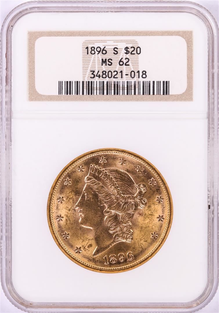 One 1896-S $20 Liberty Head Double Eagle Gold Coin NGC MS62. NGC Certified.
