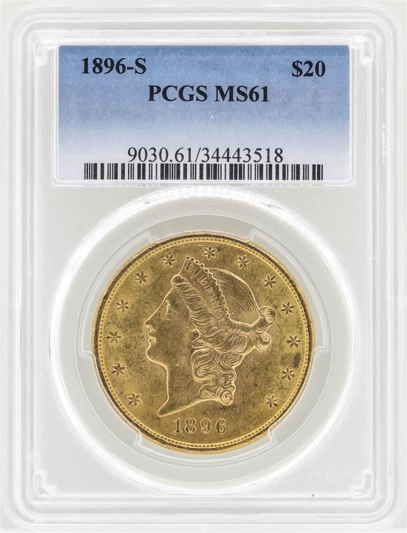 One 1896-S $20 Liberty Head Double Eagle Gold Coin PCGS MS61. PCGS Graded.