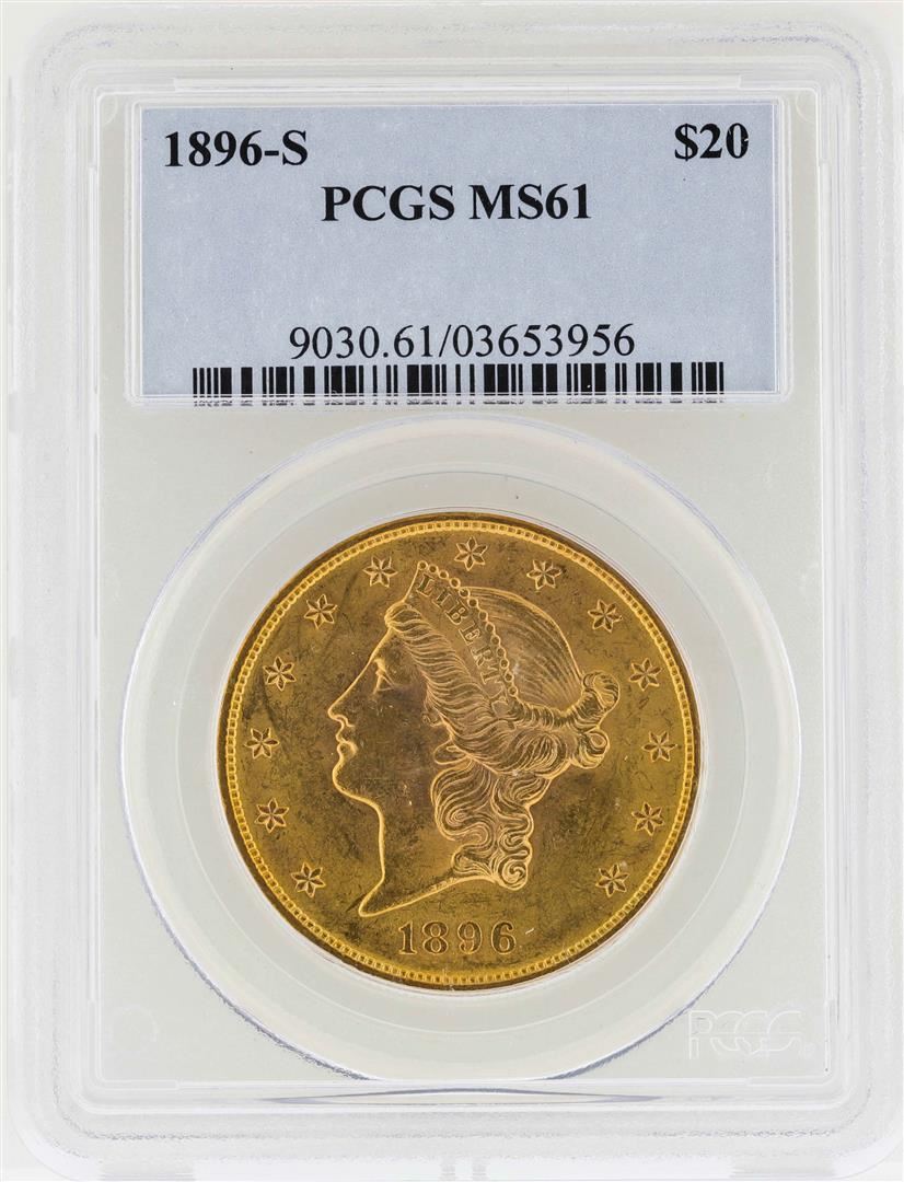 One 1896-S $20 Liberty Head Double Eagle Gold Coin PCGS MS61. PCGS Graded.