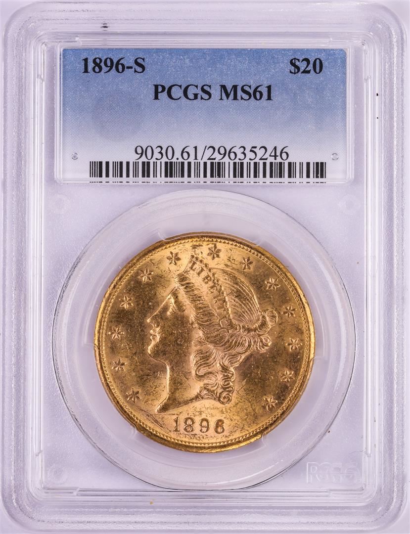 One 1896-S $20 Liberty Head Double Eagle Gold Coin PCGS MS61. PCGS Graded.