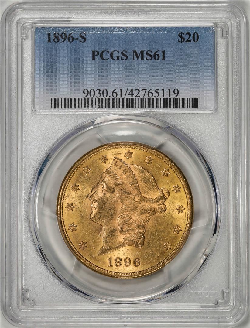 One 1896-S $20 Liberty Head Double Eagle Gold Coin PCGS MS61. PCGS Graded.