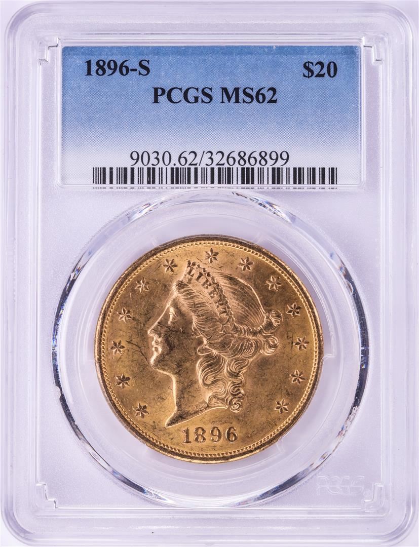 One 1896-S $20 Liberty Head Double Eagle Gold Coin PCGS MS62. PCGS Graded.