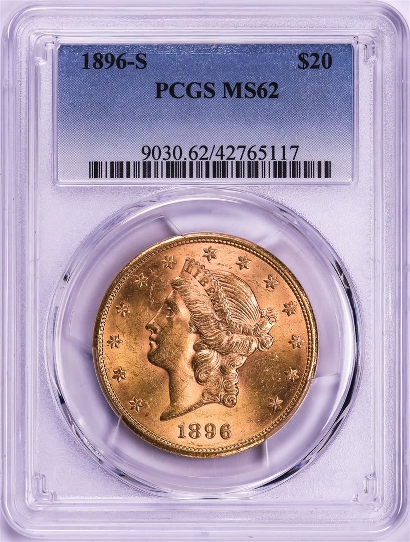 One 1896-S $20 Liberty Head Double Eagle Gold Coin PCGS MS62.