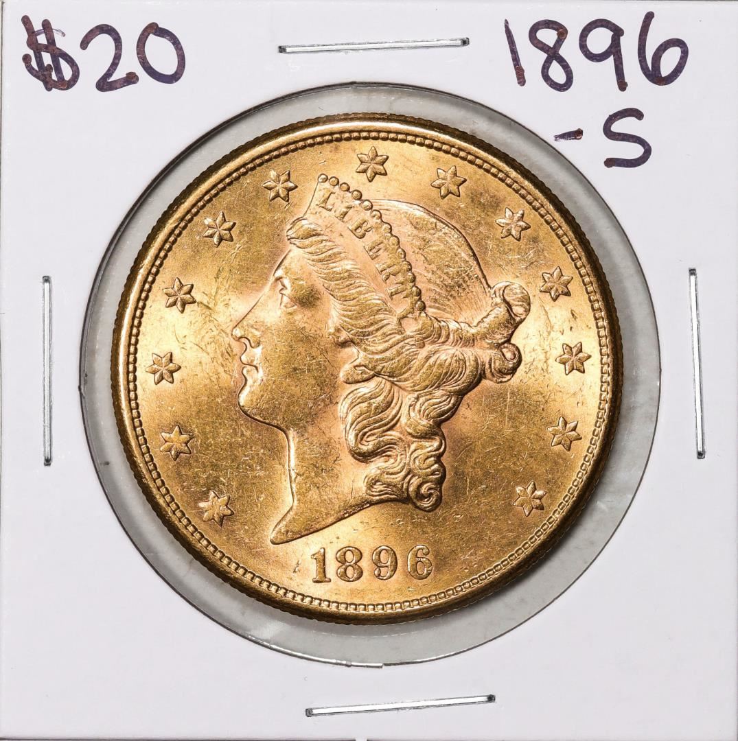 One 1896-S $20 Liberty Head Double Eagle Gold Coin.