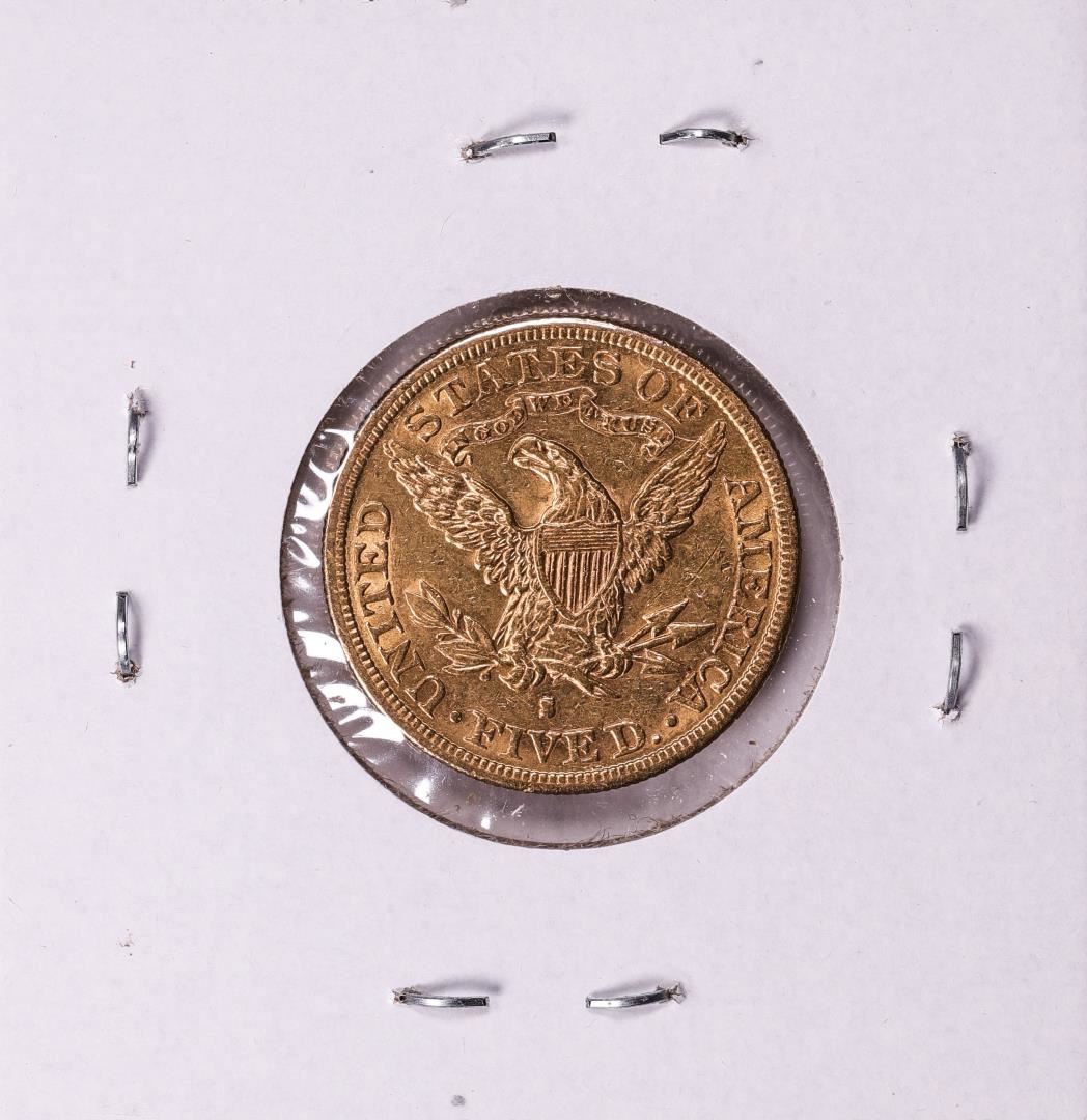 One 1896-S $5 Liberty Head Half Eagle Gold Coin.