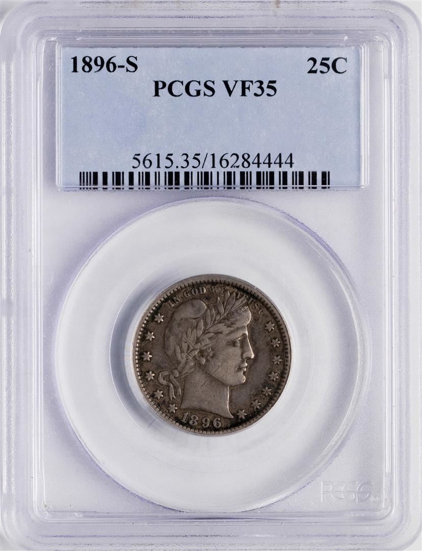 One 1896-S Barber Quarter Coin PCGS VF35. PCGS Graded.