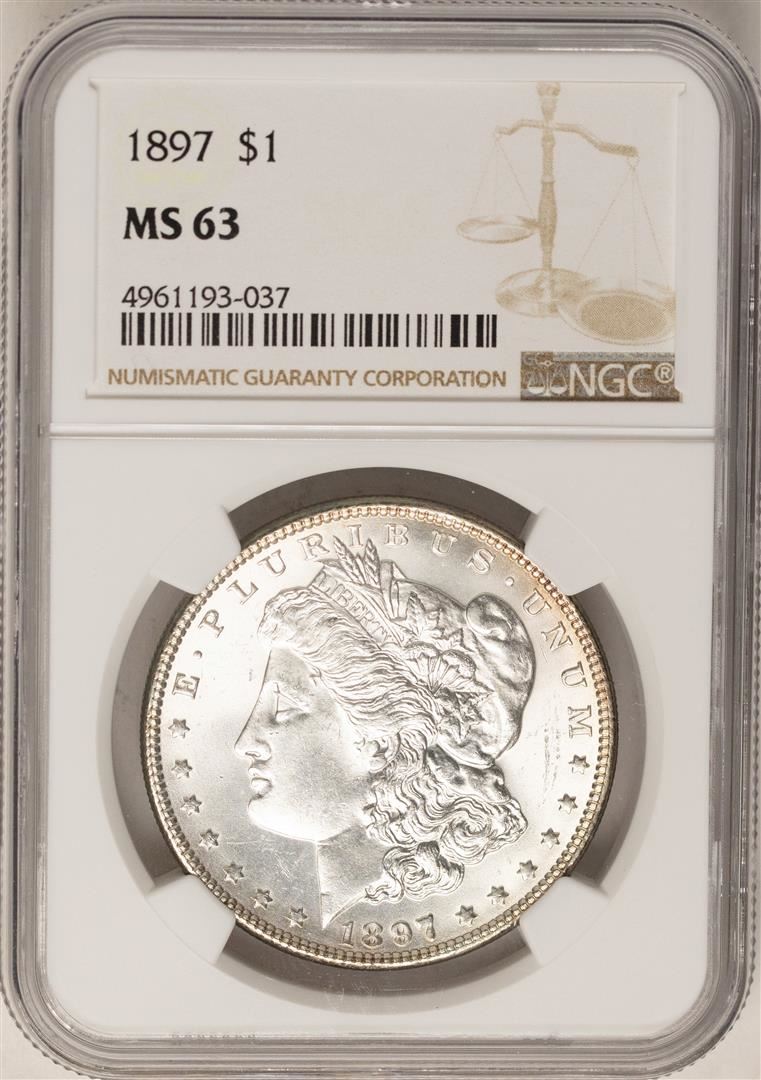 One 1897 $1 Morgan Silver Dollar Coin NGC MS63. NGC Certified.