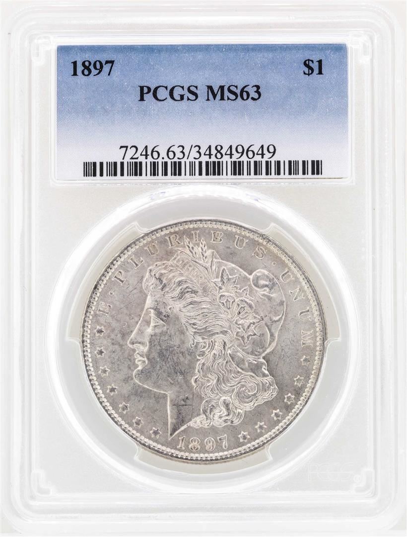 One 1897 $1 Morgan Silver Dollar Coin PCGS MS63. PCGS Graded.